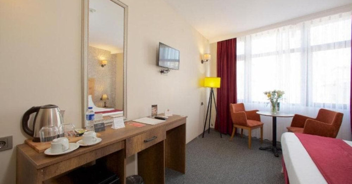 Pamper yourself with onsite body treatments and facials. This hotel also features complimentary wireless internet access and concierge services.. Featured amenities include dry cleaning/laundry services, a 24-hour front desk, and luggage storage. A roundtrip airport shuttle is provided for a surcharge (available 24 hours)..Optional fees: Fee for buffet breakfast: approximately EUR 10 for adults and EUR 5 for children Airport shuttle fee: EUR 100 per vehicle (roundtrip, maximum occupancy 4) Pet fee: EUR 30 per accommodation, per day Rollaway bed fee: EUR 30.0 per day The above list may not be comprehensive. Fees and deposits may not include tax and are subject to change. . Policies: Reservations are required for spa treatments. Reservations can be made by contacting the hotel prior to arrival, using the contact information on the booking confirmation. Cashless payment methods are available for all transactions. Contactless check-in and contactless check-out are available. . Instructions: Extra-person charges may apply and vary depending on property policy Government-issued photo identification and a credit card, debit card, or cash deposit may be required at check-in for incidental charges Special requests are subject to availability upon check-in and may incur additional charges; special requests cannot be guaranteed The name on the credit card used at check-in to pay for incidentals must be the primary name on the guestroom reservation This property accepts credit cards, debit cards, and cash This property reserves the right to pre-authorize the guest's credit card prior to arrival. Cashless transactions are available . Special instructions: This property offers transfers from the airport (surcharges may apply). Guests must contact the property with arrival details before travel, using the contact information on the booking confirmation. Front desk staff will greet guests on arrival at the property.. Minimum age: 18. Check in from: 2:00 PM. Check in to: anytime. . Check out: 12:00 PM.