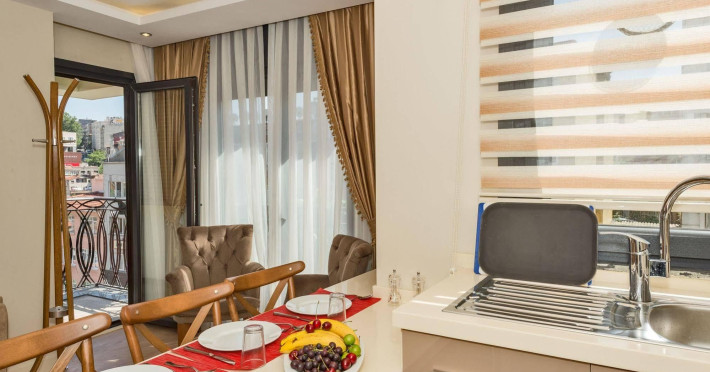 Near Taksim Square With a stay at Gen Suites in Istanbul (Taksim), you'll be within a 15-minute walk of Taksim Square and Istiklal Avenue. This apartment is 1.7 mi (2.8 km) from Galata Tower and 3.3 mi (5.3 km) from Grand Bazaar. Distances are displayed to the nearest 0.1 mile and kilometer. Acibadem Taksim Hospital - 0.5 km / 0.3 mi Istanbul Congress Center - 1 km / 0.6 mi Taksim Square - 1.1 km / 0.7 mi Istanbul Technical University - 1.1 km / 0.7 mi Lutfi Kirdar Convention and Exhibition Centre - 1.2 km / 0.7 mi Istiklal Avenue - 1.2 km / 0.7 mi Cemil Topuzlu Open Air Theatre - 1.3 km / 0.8 mi Tupras Stadium - 1.4 km / 0.9 mi Dolmabahçe Palace - 1.7 km / 1.1 mi Pera Palace Hotel - 1.9 km / 1.2 mi American Hospital - 2 km / 1.2 mi Bosphorus - 2 km / 1.3 mi Galataport - 2.2 km / 1.3 mi Golden Horn - 2.3 km / 1.4 mi Galata Tower - 2.5 km / 1.5 mi The nearest airports are: Istanbul Airport (IST) - 38 km / 23.6 mi Istanbul Sabiha Gokcen Intl. Airport (SAW) - 45.9 km / 28.5 mi Make yourself at home in one of the 14 air-conditioned rooms featuring kitchens with refrigerators and stovetops. LCD televisions with satellite programming provide entertainment, while complimentary wireless internet access keeps you connected. Conveniences include phones, as well as safes and desks. Make use of convenient amenities such as complimentary wireless internet access, a television in a common area, and tour/ticket assistance. Take advantage of the apartment's 24-hour room service. Featured amenities include dry cleaning/laundry services, a 24-hour front desk, and luggage storage. A roundtrip airport shuttle is provided for a surcharge (available 24 hours), and free self parking is available onsite.Extra-person charges may apply and vary depending on property policy Government-issued photo identification and a cash deposit may be required at check-in for incidental charges Special requests are subject to availability upon check-in and may incur additional charges; special requests cannot be guaranteed This property accepts credit cards and debit cards Host has not indicated whether there is a carbon monoxide detector on the property; consider bringing a portable detector with you on the trip Host has not indicated whether there is a smoke detector on the property This property is professionally cleaned This property offers transfers from the airport (surcharges may apply). Guests must contact the property with arrival details before travel, using the contact information on the booking confirmation. To make arrangements for check-in please contact the property at least 72 hours before arrival using the information on the booking confirmation. Guests must contact the property in advance for check-in instructions. Front desk staff will greet guests on arrival at the property. null Airport shuttle fee: EUR 50.00 per vehicle (roundtrip) The above list may not be comprehensive. Fees and deposits may not include tax and are subject to change. Policies(knowBeforeYouGo= Up to 2 children 5 years old and younger stay free when occupying the parent or guardian's room, using existing bedding. No pets and no service animals are allowed at this property. The property is professionally cleaned. Contactless check-in and contactless check-out are available. )