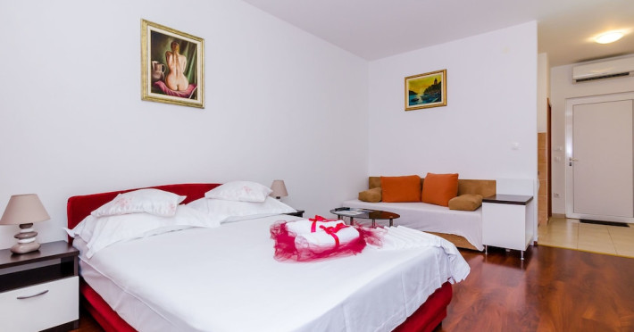 Located only a 20-minute walk from Dubrovnik's old town and its beaches, this apartment complex is the ideal choice of accommodation when visiting the area. Apartments Aura are located near Gru? Port.The property offers a common outdoor seasonal swimming pool surrounded by sun loungers and offers whirlpool options. All guests are welcomed with a complimentary drink. A large furnished terrace and barbecue are also at guests' disposal. Free parking is available, reservation is not required. Guests can use jacuzzi - 5? charge per person per day will apply. The next supermarket can be found 20 metres away and a restaurant is just 300 metres away. The bus terminal and Gru? Harbor can be reached on foot in 10 minutes. Airport transfers and daily trips are also available upon request and at an additional surcharge. Please note: -This property can not accommodate children under 9 years of age. -There is possibility of merging more then one unit into one.